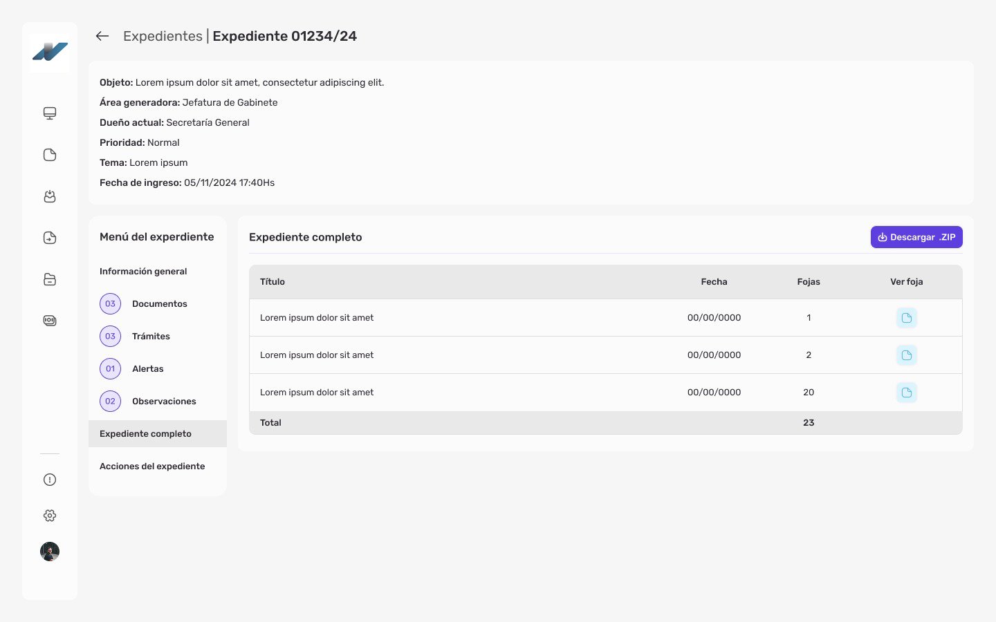 Nuestra solución digital de gestión de expedientes revoluciona la administración de documentos al automatizar por completo la clasificación, numeración y seguimiento de cada movimiento en tiempo real.